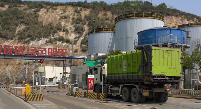 华新城市生活垃圾处置技术路线分为生态化预处理和水泥窑协同无害化处置两部分。生活垃圾经过接收、检测、生物及机械干化、生物除臭、多轮分离破碎、分类筛选等步骤,分别得到衍生燃料RDF、金属、石头瓦块等无机物和渗滤液等,无任何残留物。这一处置技术充分实现了高效节能,极大提高政府统筹解决“垃圾围城”难题的能力。
