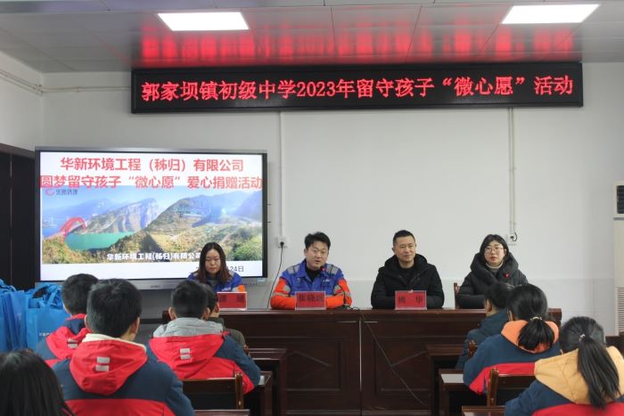 本次活动由郭家坝镇初级中学牵头组织,秭归环保在得知该中学困难学子的情况后,认领了80位同学的“微心愿”卡。小小的心愿卡,承载着他们大大的梦想。心愿卡上写道:我想要一支笔、我想要一本作文书、我想要一盒彩笔、我想要一个篮球、我想要一个书包、我想要四大名著……捐赠仪式上,校长熊华代表学校发言致辞,对秭归环保捐赠的物资表示谢意,并要求被捐赠的学生要好好学习,将来做有用之人,回馈社会。秭归环保生产副总经理作为爱心企业人士代表发言,希望孩子们能够健康快乐成长,做一个感恩的人,去贡献自己的一份力量,帮助更多需要帮助的人。随后,校领导与我方志愿者一起为80名受赠的学生发放了他们的微心愿大礼包。看着孩子们领到那份属于自己的“微心愿”物资后,小心翼翼的打开,脸上洋溢的笑容代表着那一刻他们是满足的,幸福的。