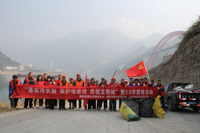 在全国第60个“学雷锋纪念日”来临之际,为进一步弘扬雷锋精神,倡导“团结、友爱、互助、进步”的志愿精神,美化城镇环境。3月3日上午,秭归环保4名青年志愿者以及居委会党员、工作人员等20余人在郭家坝镇居委会郭坤书记的带领下开展了以“‘落实河长制 保护母亲河 共创文明城’暨3.5学雷锋活动”为主题的洁河志愿服务大行动。