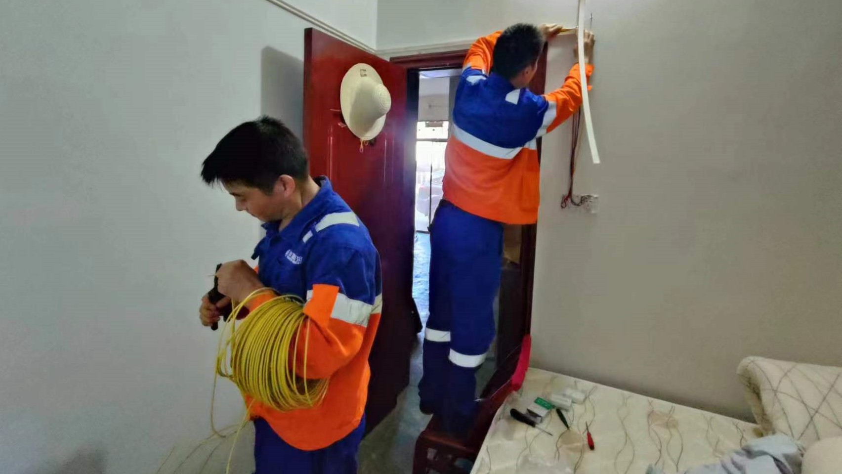 志愿者帮老人维修电线