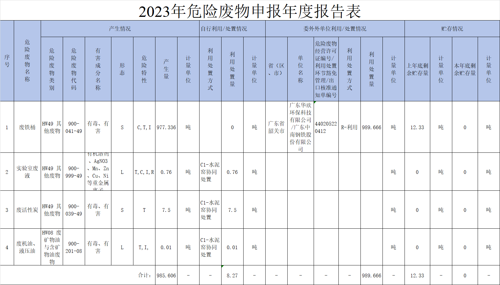 恩平市华新环境工程有限公司2023年危险废物申报年度报告表