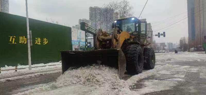 当日,华新环境从武昌区城管局得知,该区主干道大面积积雪,需华新环境协助提供除雪清路工作支持。公司领导高度重视,立即成立工作组,组织武汉市长山口环保工厂、龙王嘴环保工厂和南太子湖环保工厂等3家工厂,在保障工厂生活垃圾及污泥处置等民生处置工作正常进行的情况下,调配铲雪车及工作人员增援武昌区除雪一线。时间就是生命,任务刻不容缓,华新环境在数小时内,迅速从工厂调配一台闲置的50铲车和专业铲车司机3人,即刻到达现场,并于深夜开始铲雪清路工作。公司领导干部在现场有序组织,工作人员在一线各司其职,全身心投入到本次任务中。由于本次积雪面积大,清除难度高,为了能尽快将积雪清除使道路畅通,公司安排3名铲车司机3班轮换保障全天24小时开展作业。